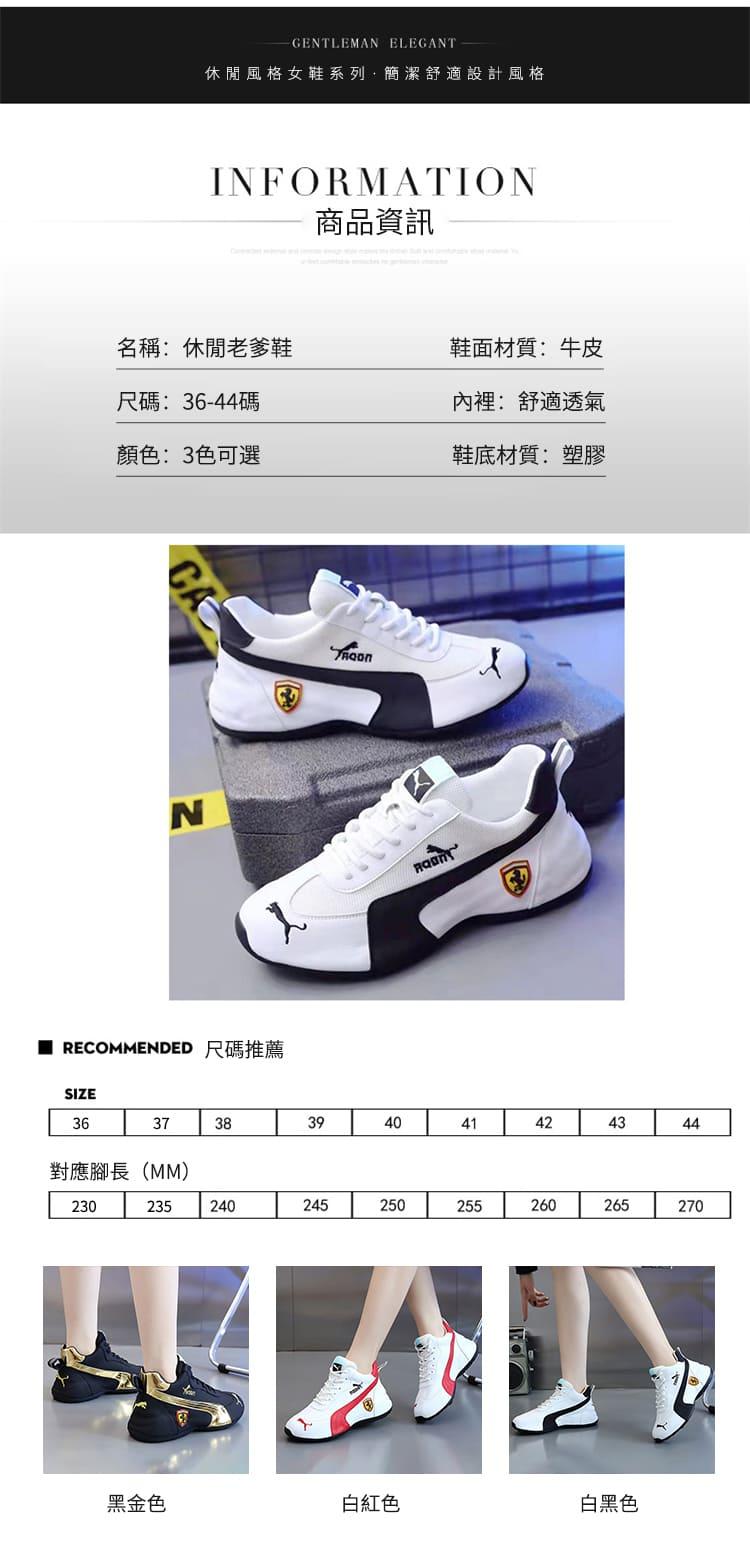 7分鐘前男女同款【時尚休閒老爹鞋】適合穿來 跑步跳舞 走街 舒適內層 輕盈質感 4.5cm厚底!36~44碼可選!現活動第二雙僅需500! - 【第二雙僅500】【時尚百搭老爹鞋】任選二雙-NT$ 1580