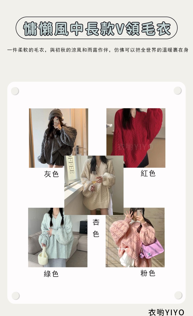 5分鐘前冬季爆款//台灣發貨+熱賣針織上衣 韓版法式V領麻花毛衣//加厚寬鬆慵懶風軟糯針織衫秋冬上衣 寬鬆上衣 毛毛外套 - 一件體驗裝NT$899