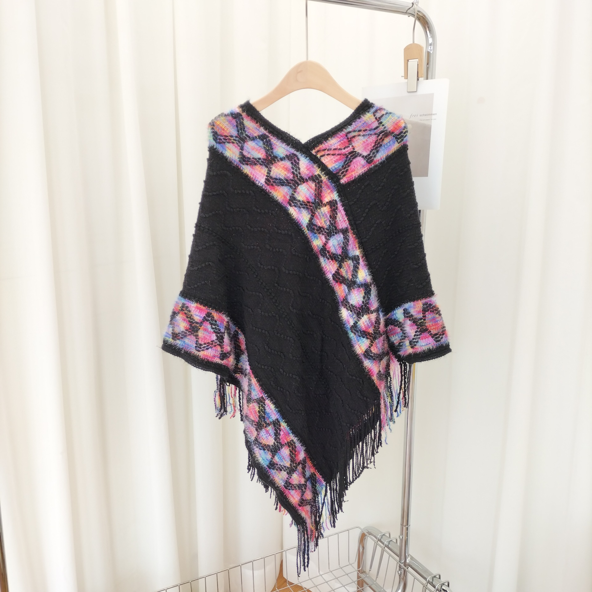 7分鐘前流蘇套頭針織披肩,民族風披肩波浪彩色百搭款 - 95%顧客選擇【超夯活動】2入組-NT$1290