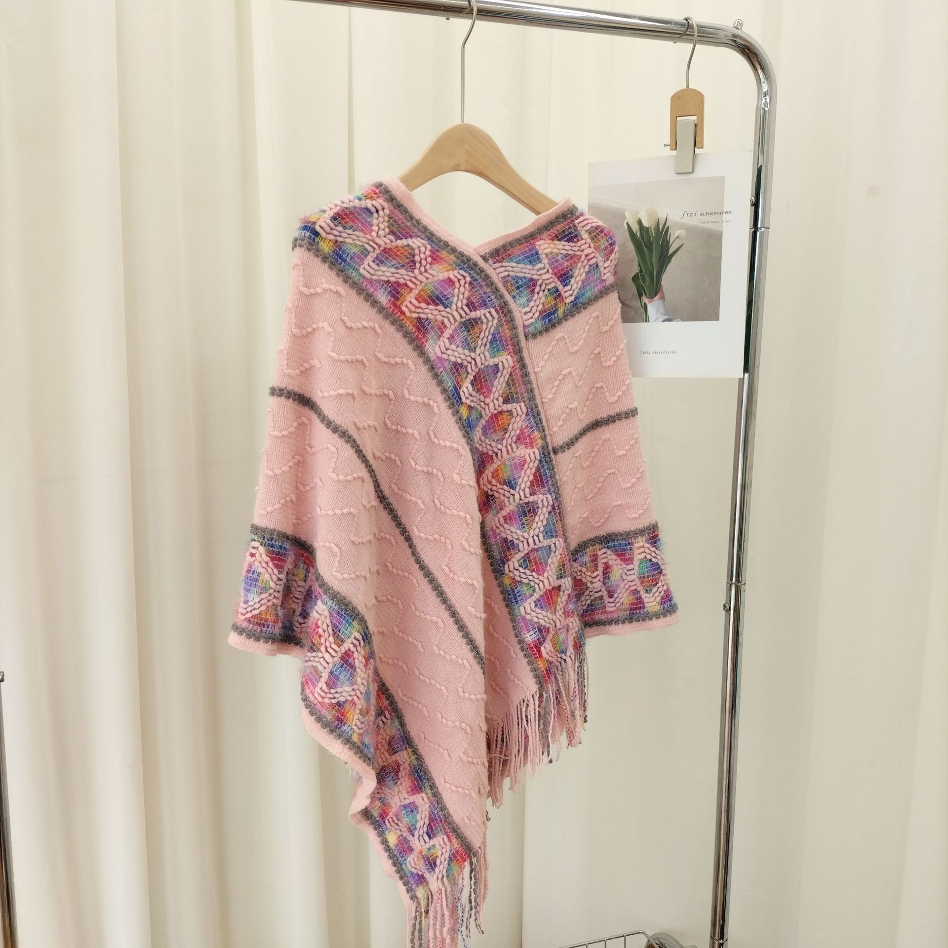 5分鐘前流蘇套頭針織披肩,民族風披肩波浪彩色百搭款 - 95%顧客選擇【超夯活動】2入組-NT$1290