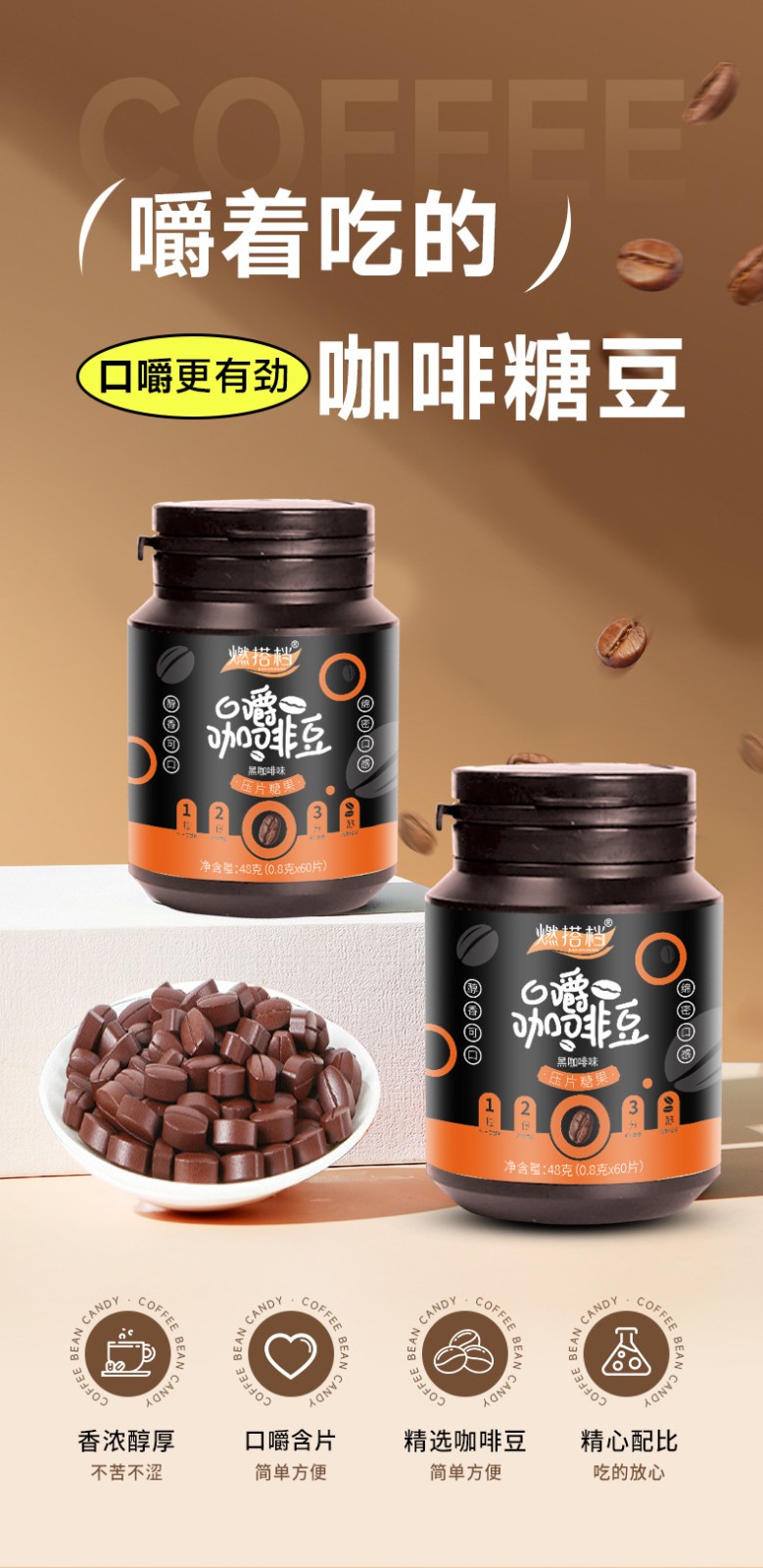 5分鐘前【口嚼咖啡豆糖】嚼著吃的咖啡豆糖,入口醇香,綿密口感,優選咖啡豆,加班熬夜、長時間開車,隨時都能嚼 - 均價249!四入組NT$999