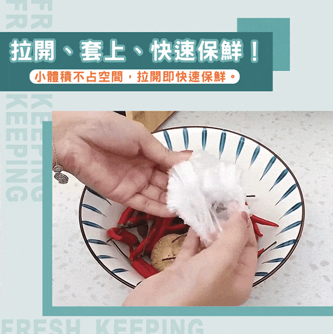 7分鐘前新款保鮮膜套 食品級材質,彈力縮口,任何大小、形狀都能輕鬆套上,保鮮不跑味,方便快速,乾淨衛生,廚房必備好物! - 破盤下殺:十五入組(1500個)NT$1399,低至NT$93/組 再贈送驚喜禮品一份!-NT$1399