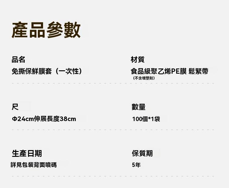 7分鐘前新款保鮮膜套 食品級材質,彈力縮口,任何大小、形狀都能輕鬆套上,保鮮不跑味,方便快速,乾淨衛生,廚房必備好物! - 超夯特惠:五入組(500個)NT$998 再贈送驚喜禮品一份!-NT$998