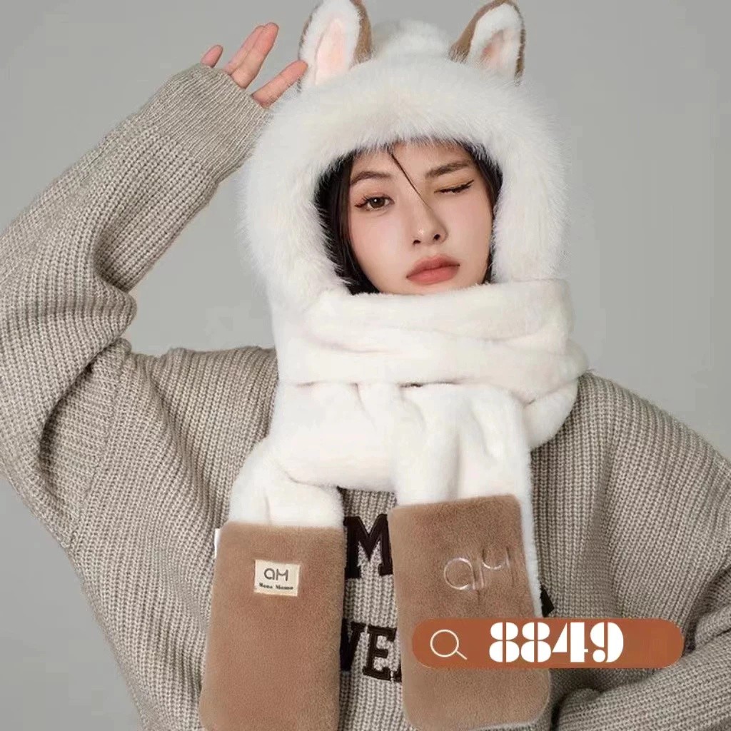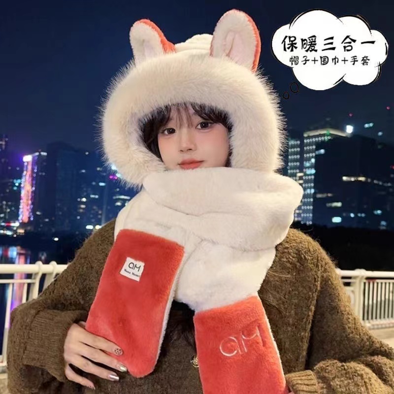 7分鐘前冬季爆款#火狐狸圍巾 帽子一體 保暖 圍脖 日韓 可愛 女生 百搭 情人節 春節 禮物 生日禮物 交換禮物 - 【狂殺特賣】團購三入組$1399