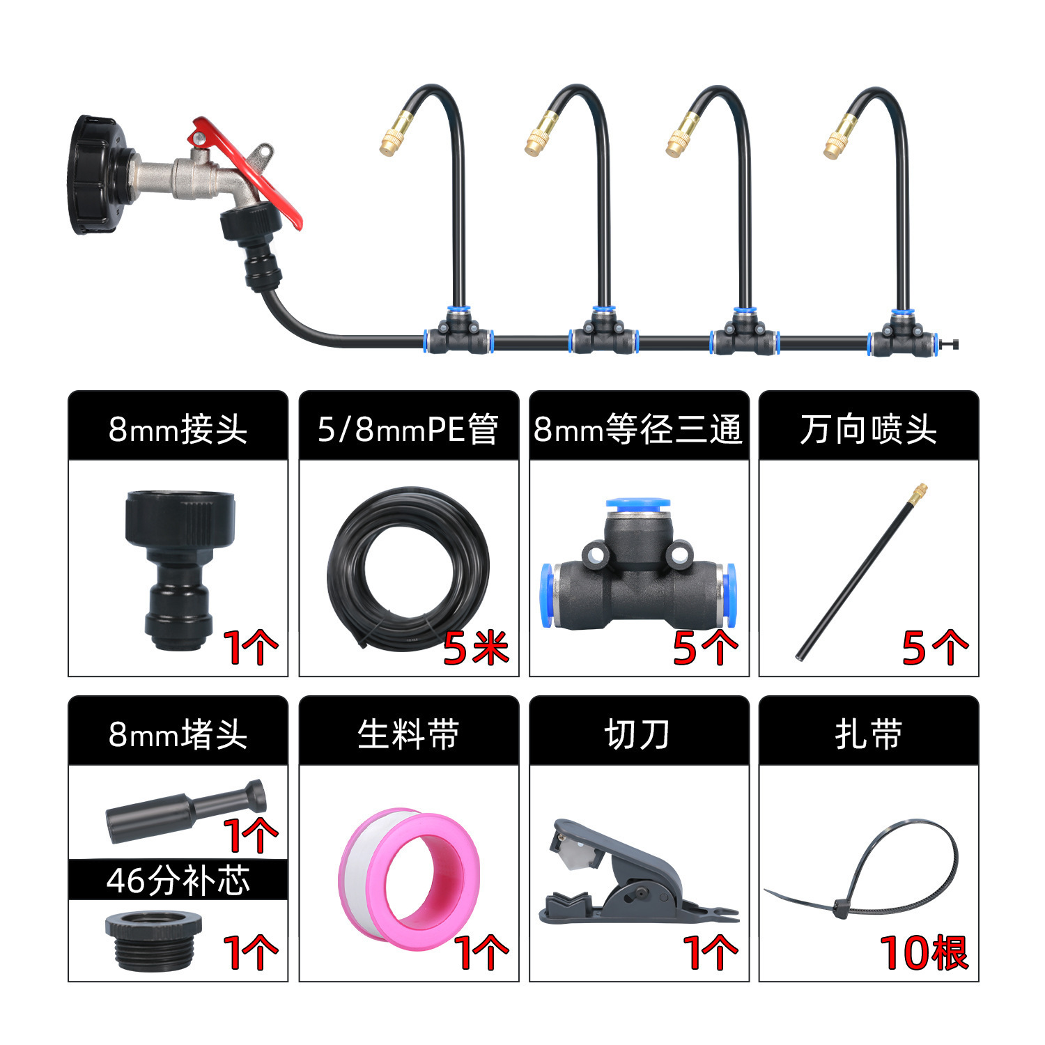 2分鐘前萬向噴頭一體自動澆花器 - 霧化套裝~5米~帶釘【一入組】NT988