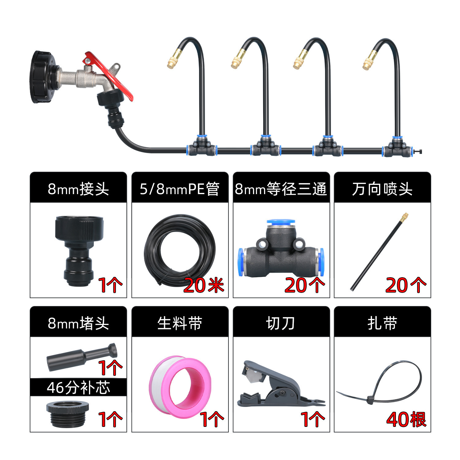 5分鐘前萬向噴頭一體自動澆花器 - 霧化套裝~20米~帶釘【一入組】NT1688