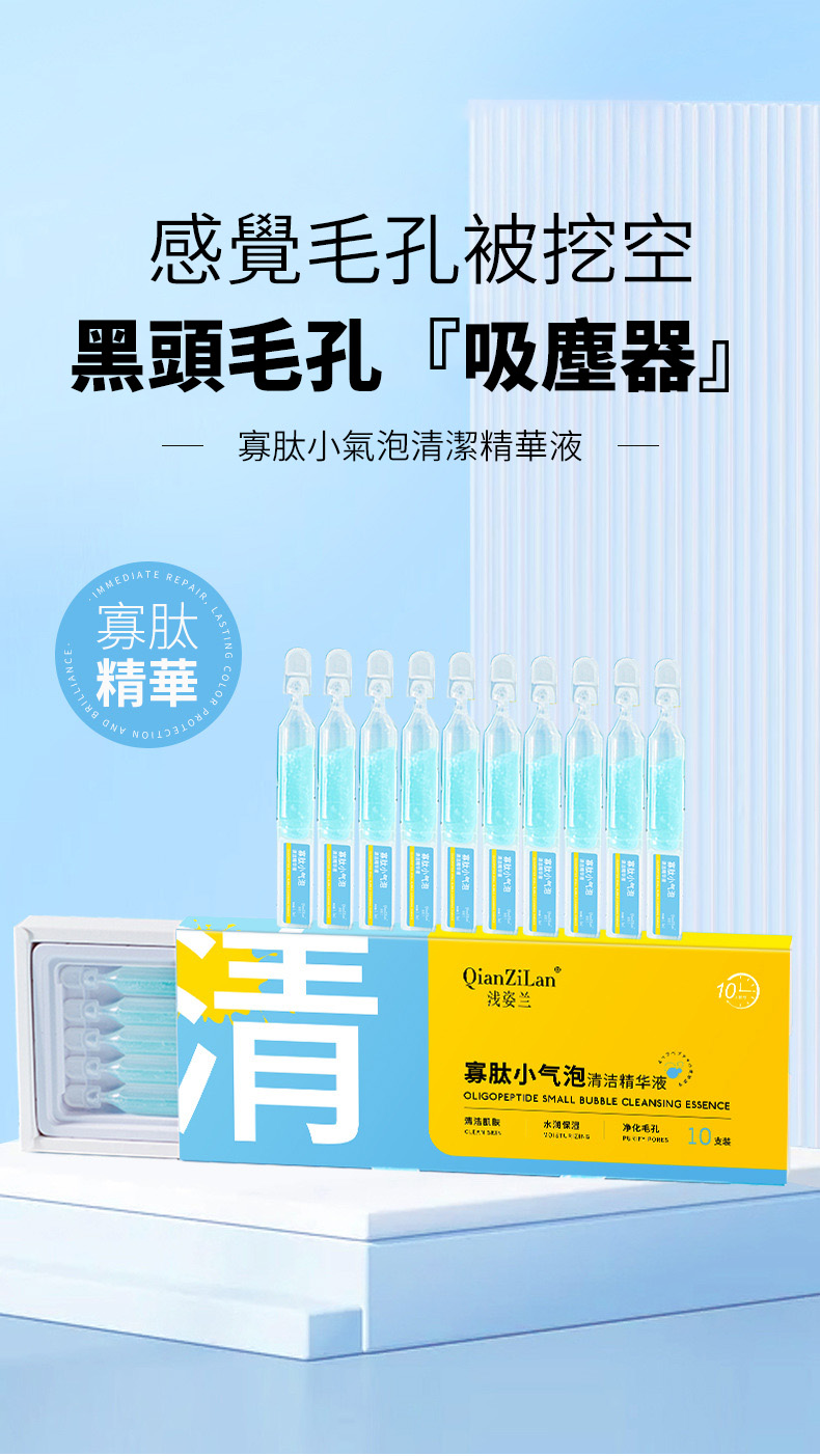11分鐘前【三分鐘黑頭粉刺自動浮出】寡肽小氣泡清潔精華露 發泡清潔毛孔 去黑頭粉刺 收縮細嫩毛孔 - 體驗組【一盒 10隻】-NT$998