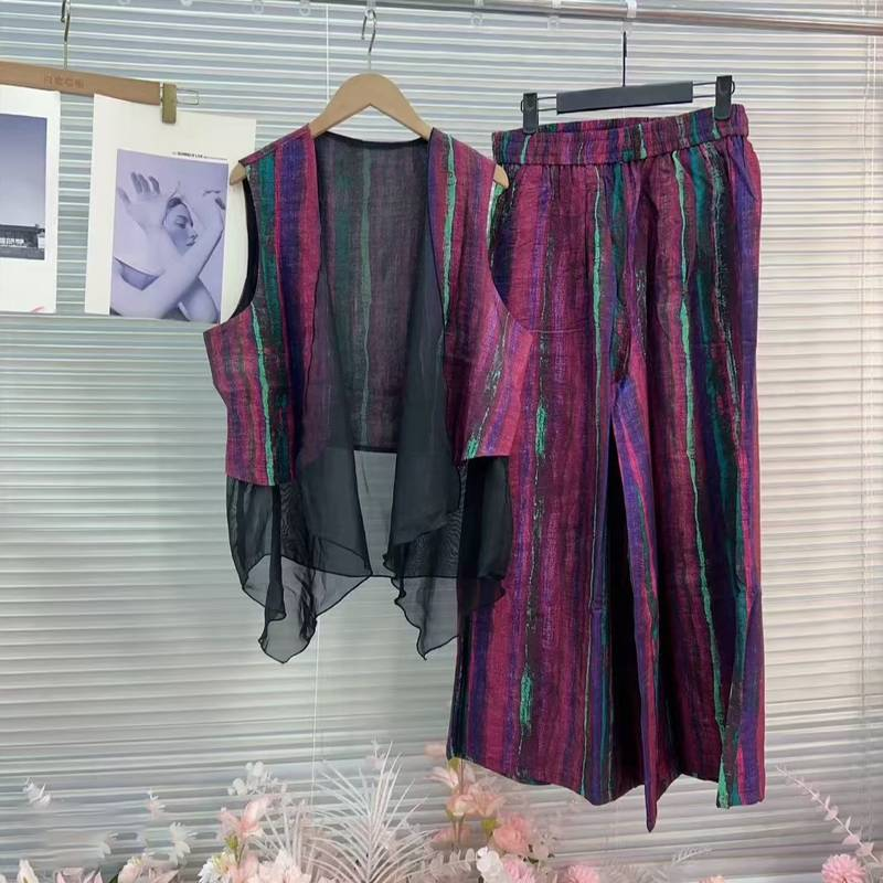 5分鐘前居然這麼顯瘦!色彩感十足的氣質馬甲套裝也太美了吧,假兩件馬甲搭配條紋寬褲,妥妥的慵懶感~ - 【限時下殺】馬甲+褲子一套 僅需 NT$998