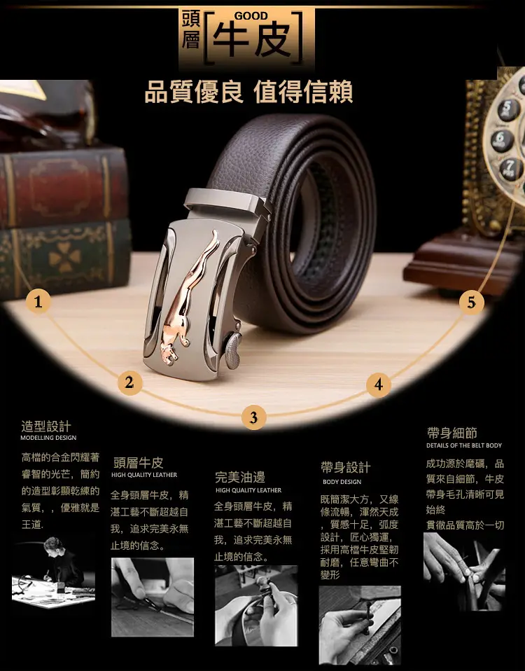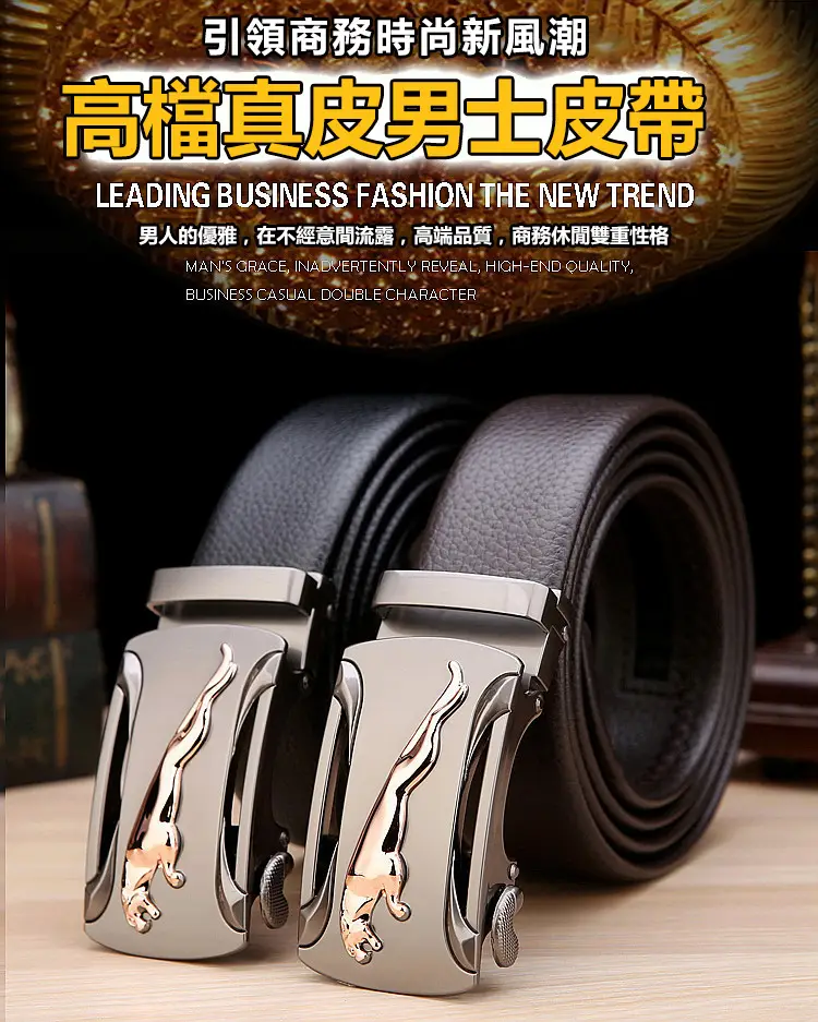 12分鐘前【官方站】男士獵豹自動扣真皮腰帶 【能用十年的真皮腰帶】 整張牛皮裁剪打造,純手工製作,耐磨耐折耐用,品質高端,彰顯男士成熟魅力