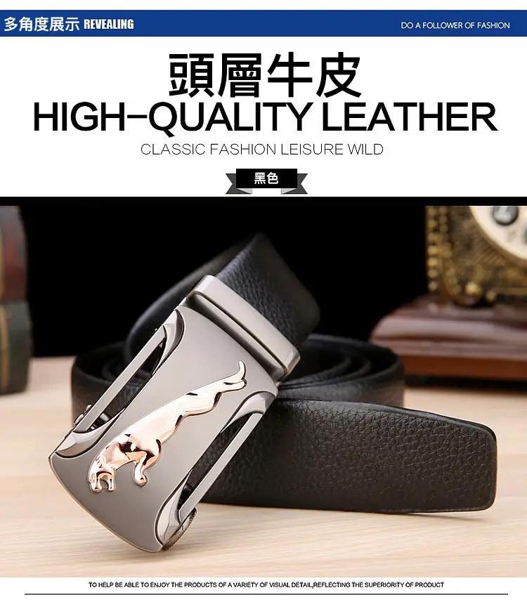 20分鐘前【官方站】男士獵豹自動扣真皮腰帶 【能用十年的真皮腰帶】 整張牛皮裁剪打造,純手工製作,耐磨耐折耐用,品質高端,彰顯男士成熟魅力