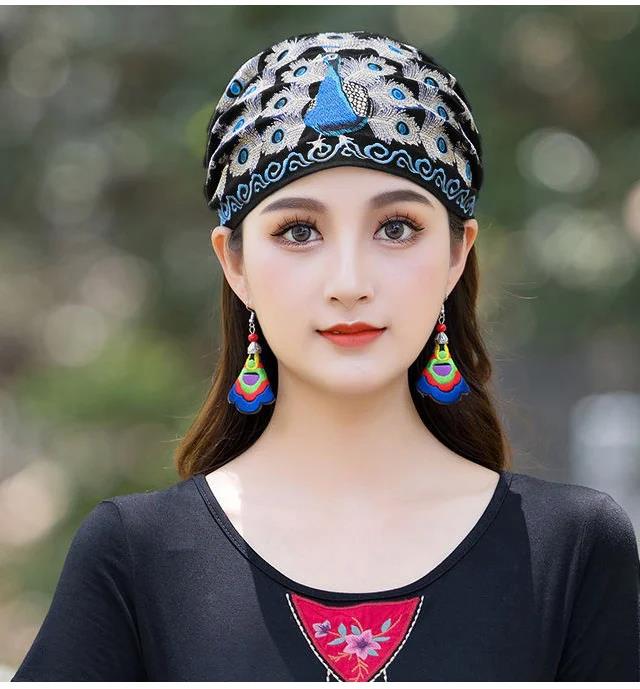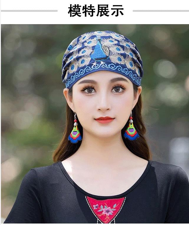 半小時前繡花頭巾頭箍刺繡發帽鬆緊發帶發飾孔雀套頭帽 天然棉麻材質,親膚透氣,不悶汗不壓抑,後面開口設計,紮馬尾也可方便佩戴 - 【尊享三入】3件僅售NT$1299,均價433/件
