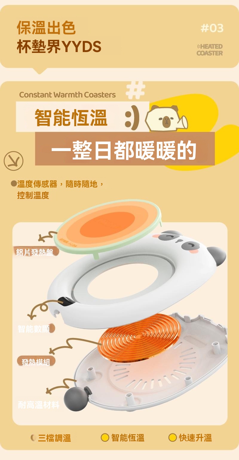 2分鐘前可愛智能恆溫usb加熱杯墊三擋可調溫 辦公室家用自動保溫暖杯 - 新品嘗鮮!1入組-NT$998