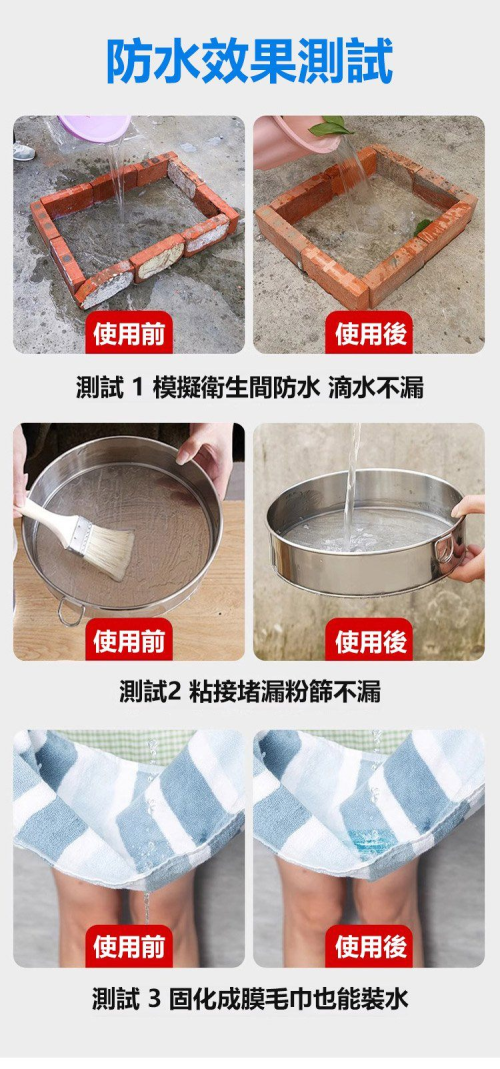 5分鐘前【廠家限時鉅惠】【一塗止漏】透明防水膠塗料300cc一桶可刷1-2坪, 外墻、陽臺、屋頂、瓷磚、屋内都可以通用 - 【一塗止漏】買二送一 3入組 NT$998