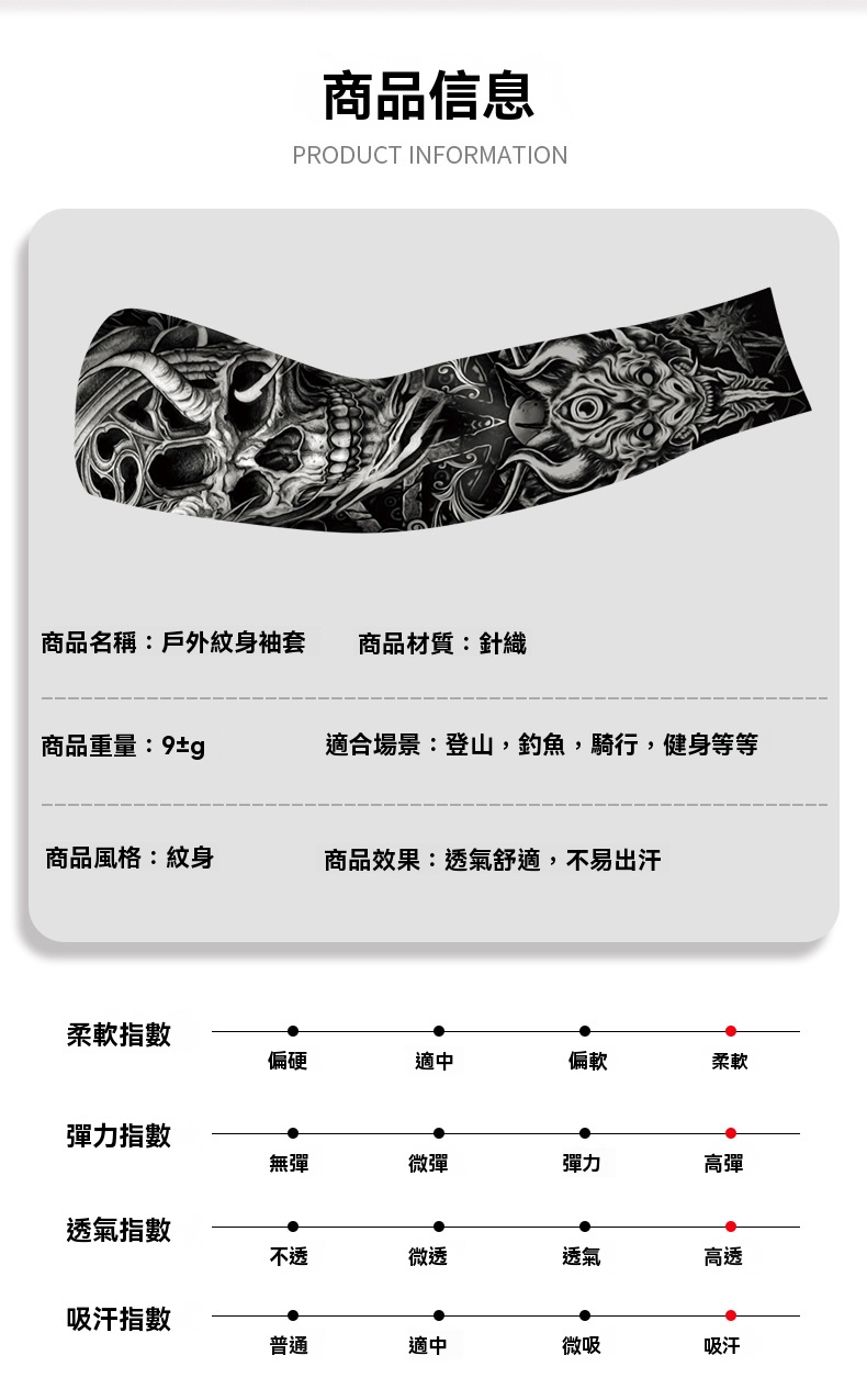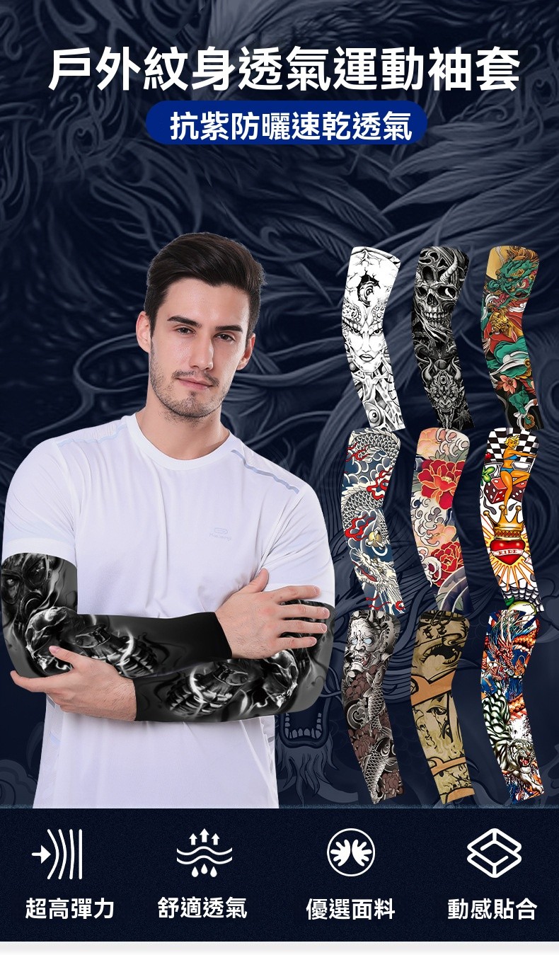 7分鐘前夏季騎行防曬紋身袖套仿真刺青速幹護臂戶外運動遮陽透氣高彈冰袖 - 體驗!!【買二送二】4入組-NT$980
