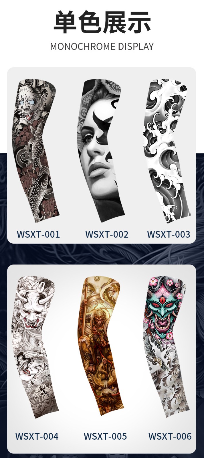 半小時前夏季騎行防曬紋身袖套仿真刺青速幹護臂戶外運動遮陽透氣高彈冰袖 - 98%客戶選擇【買三送三】6入組-NT$1198