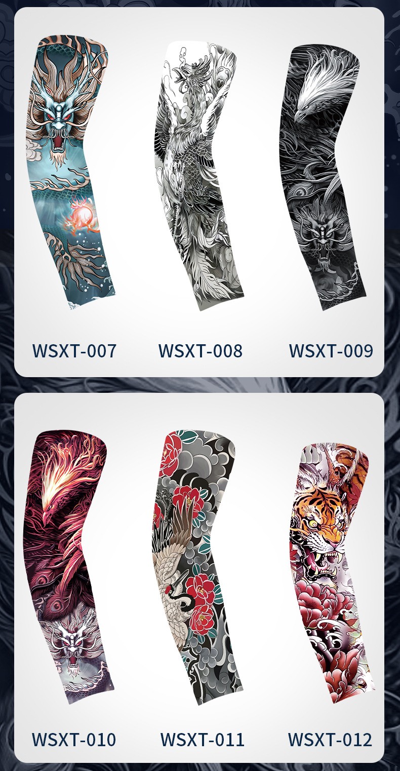 5分鐘前夏季騎行防曬紋身袖套仿真刺青速幹護臂戶外運動遮陽透氣高彈冰袖 - 體驗!!【買二送二】4入組-NT$980