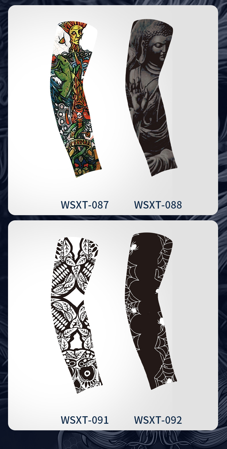 半小時前夏季騎行防曬紋身袖套仿真刺青速幹護臂戶外運動遮陽透氣高彈冰袖 - 店家推薦【買四送四】8入組-NT$1398