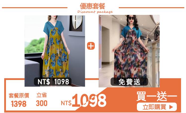 4分鐘前網紅爆款夏季新款寬鬆復古印花高端優雅連衣裙 - 【買一送一】任選2件 NT$1098