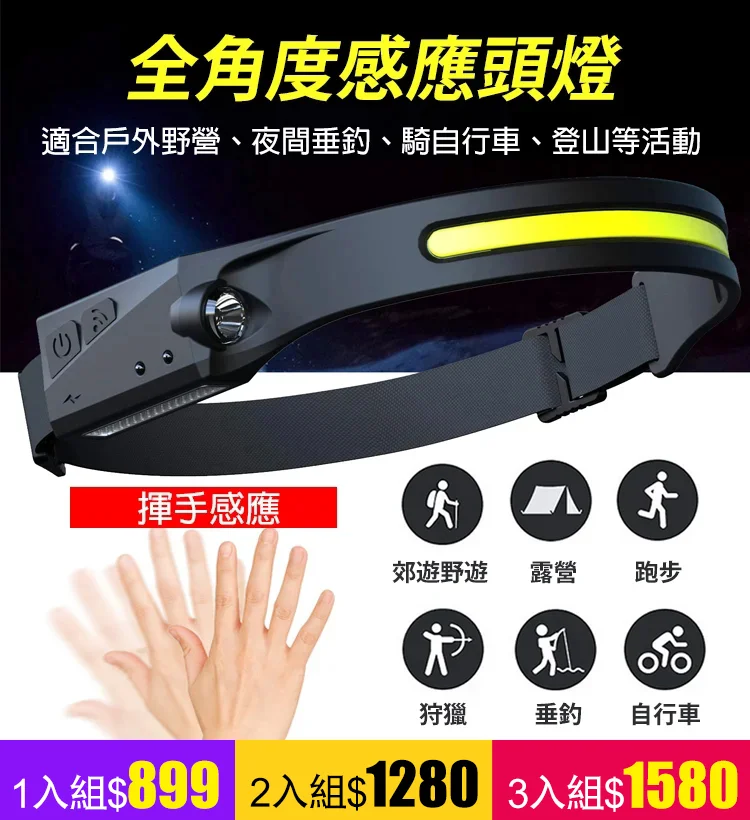 2分鐘前智慧感應式頭燈,3款照明方式!解放雙手照明好物! - 限時促銷:2入組 NT$1080