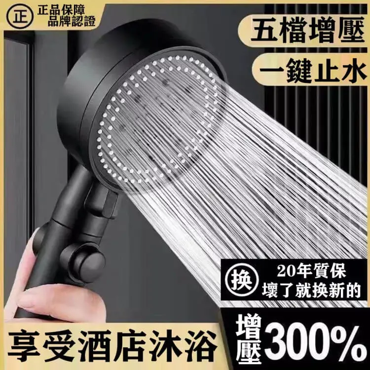 20分鐘前【熱銷10萬+】【黑武士花灑】升級款五檔增壓花灑,五檔調節,一鍵止水,強增壓,大出水,在家享受酒店淋!浴 - 【超夯團購!任選5件】僅需NT$1179 均價235/件