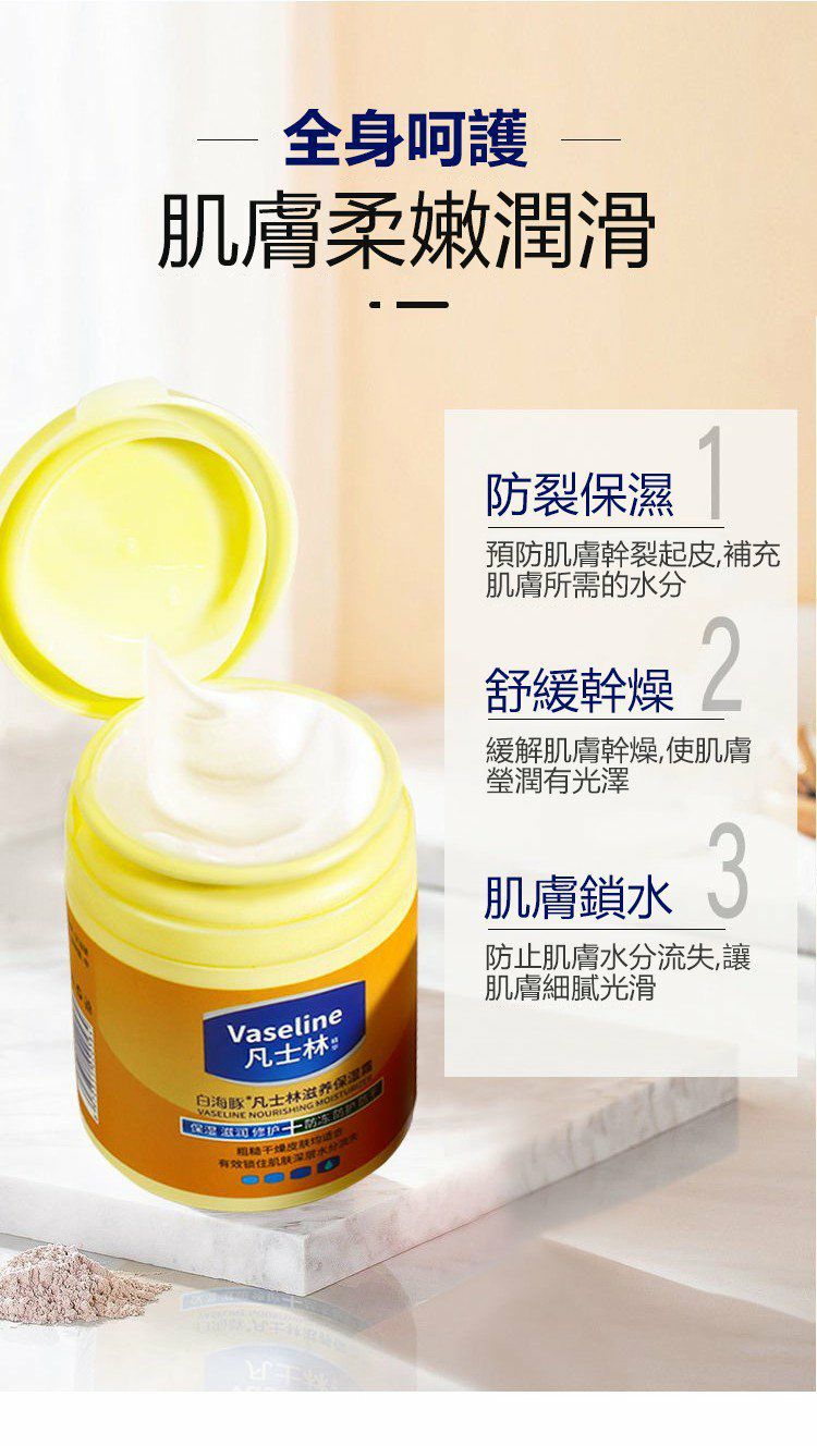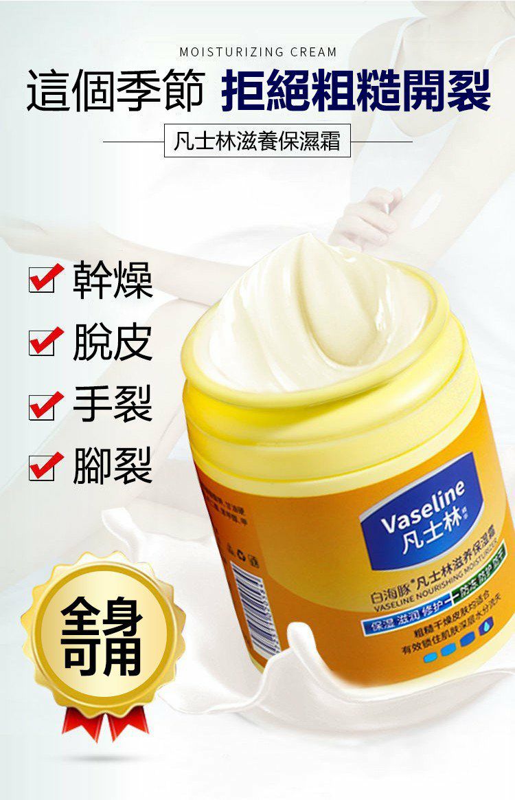 11分鐘前醫師推薦【凡士林滋潤補水保濕霜】#買三送二 到手五盒 一抹即潤 瞬間吸收!保濕修護 清爽不油膩 全身都能用。可以當面霜,護手霜,身體乳使用 - 【買三送二】到手5瓶-NT$899